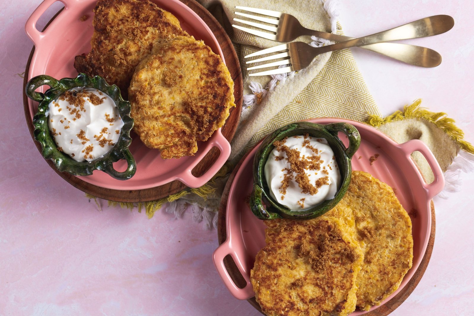 Chorreadas are made from fresh corn — grated directly from the cob to produce a wet, sweet batter — mixed with a small amount of flour, sugar, and salt. The batter is poured onto a griddle or comal and cooked until the edges set and the surface develops a light golden colour, then flipped and cooked briefly on the second side. The result is a pancake with a texture that is simultaneously slightly crispy at the edges and soft in the centre — with the sweetness and the characteristic flavour of fresh corn in every bite.
