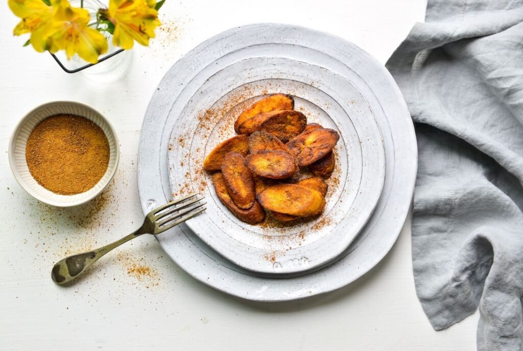 The maduro is made from a fully ripe plantain — not the green, starchy fruit used for patacones but the deeply yellow, almost black-skinned fruit that has been allowed to ripen until its starches have converted almost entirely to sugars and its flesh is soft, sweet, and intensely flavoured. The ripe plantain is cut diagonally into thick slices and fried in oil until caramelised on the outside — the natural sugars darkening and intensifying against the heat of the pan — while remaining soft and almost custardy in the centre.