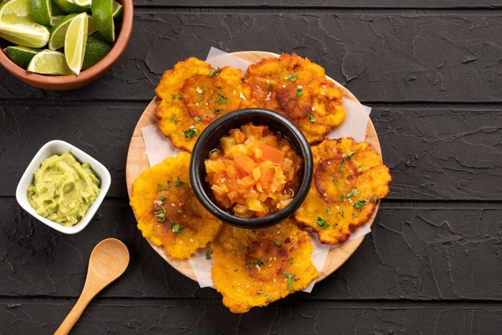 Patacones are twice-fried green plantain — one of the most satisfying, most versatile, and most universally loved foods in Costa Rica and throughout Central America and the Caribbean. They are simultaneously a side dish, a snack, a vehicle for toppings, and in their most elaborate form a complete meal in their own right.