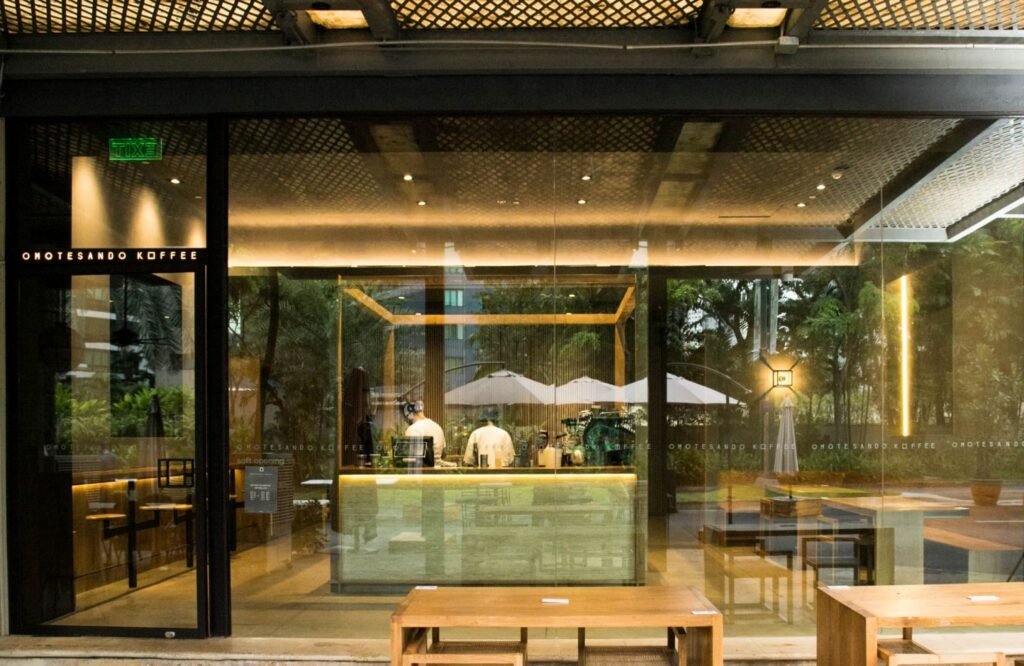 Omotesando Koffee began as one of the most extreme experiments in coffee minimalism ever attempted — a pop-up operation run by Eiichi Kunitomo from a tiny wooden cube installed inside the courtyard of a traditional machiya house in Kyoto, serving only espresso and espresso-based drinks in three sizes, with nothing else on the menu.