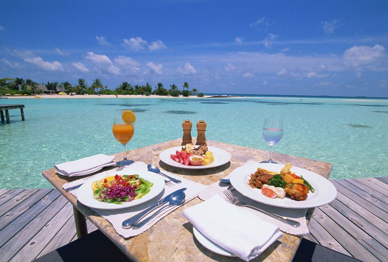 Resort dining in the Maldives spans an extraordinary range — from the basic buffets of budget properties to the multiple-restaurant options of luxury resorts with internationally acclaimed chefs and wine lists of extraordinary depth.