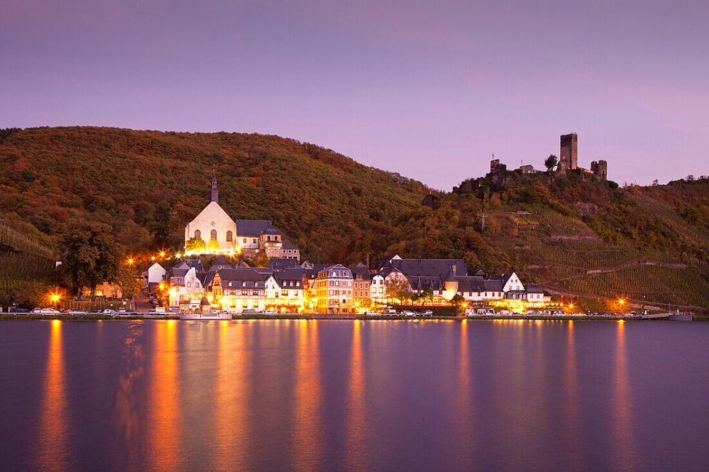 Stone alleyways wind between ancient half-timbered houses draped in flowers. A ruined castle (Burg Metternich) watches over the valley from the hill above. Family-run wine taverns serve local Riesling straight from the barrel. There are no chain hotels, no chain restaurants — just pure, authentic German village life.