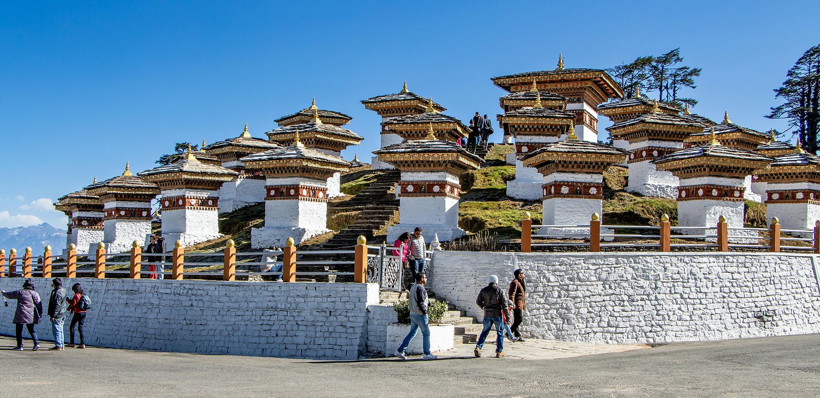 Along the way, pause at Dochula Pass, perched at 3,100 meters. Here, 108 white stupas, known as Druk Wangyal Chortens, are spread across the hillside as symbols of peace and good fortune. On a clear day, be captivated by the distant, snow-covered Himalayan peaks standing majestically on the horizon.