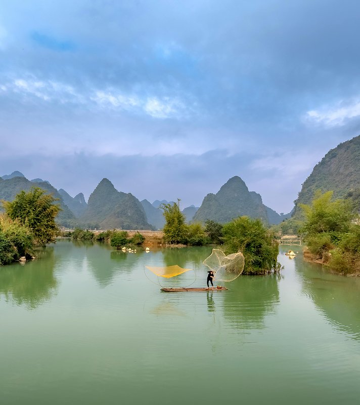This morning, immerse yourself in the idyllic Yangshuo countryside. Choose to stroll, cycle, or drive at your own pace along winding paths through verdant paddies and rolling hills, bathed in golden sunlight. Inhale the fresh, fragrant air as time seems to slow, mirroring the gentle flow of the nearby rivers.
