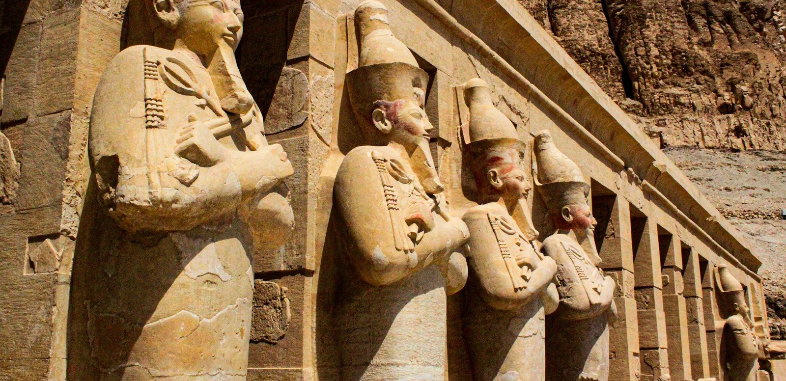 Continue to the impressive Mortuary Temple of Queen Hatshepsut, dramatically set against towering limestone cliffs. Admire its distinctive terraced architecture and learn about the legacy of Egypt’s most influential female ruler. Conclude the tour at the massive Colossi of Memnon before returning to your cruise vessel.
