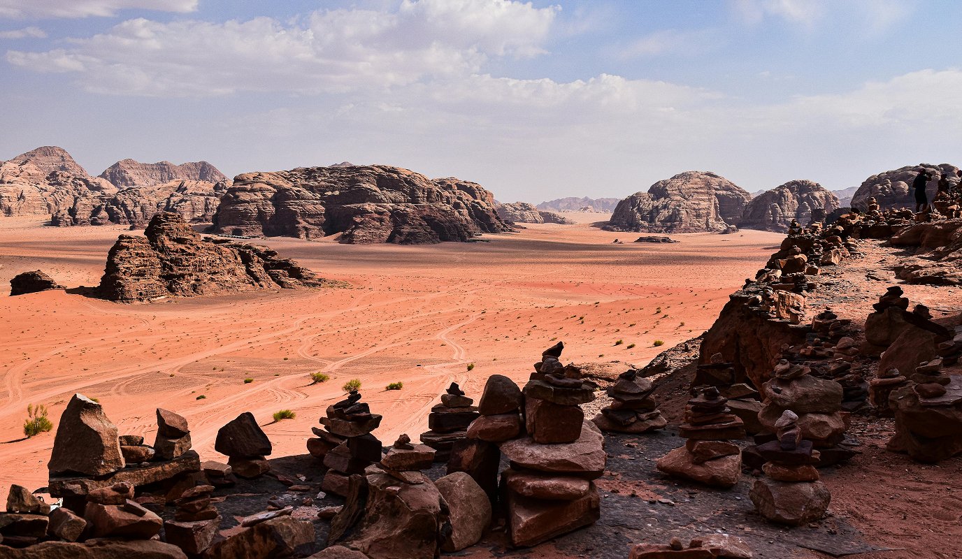 Highlights: Wadi Rum desert, 4×4 jeep safari, sandstone mountains, Bedouin culture, desert camp, stargazing.