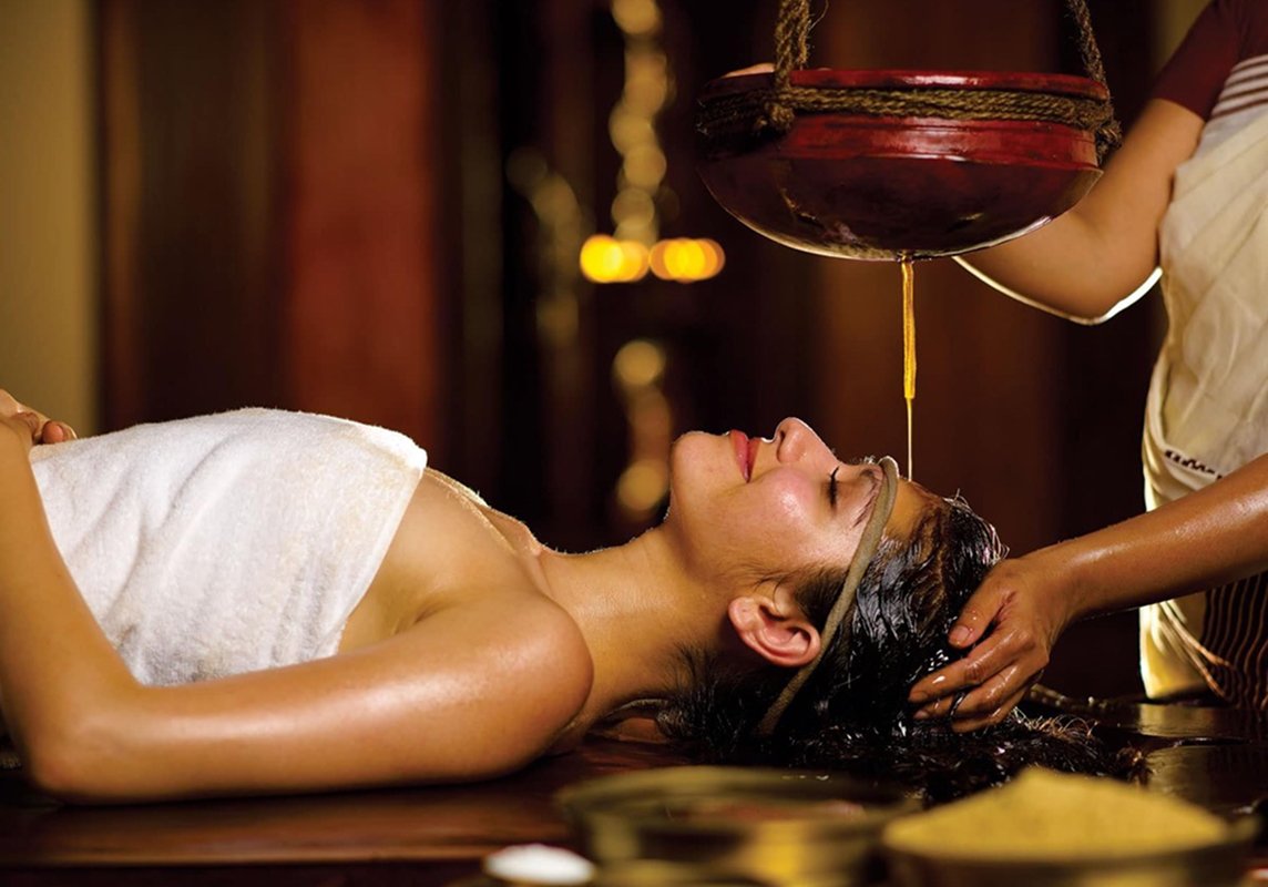 Later, experience your first personalized Ayurvedic therapy using warm herbal oils to release tension and improve circulation.
