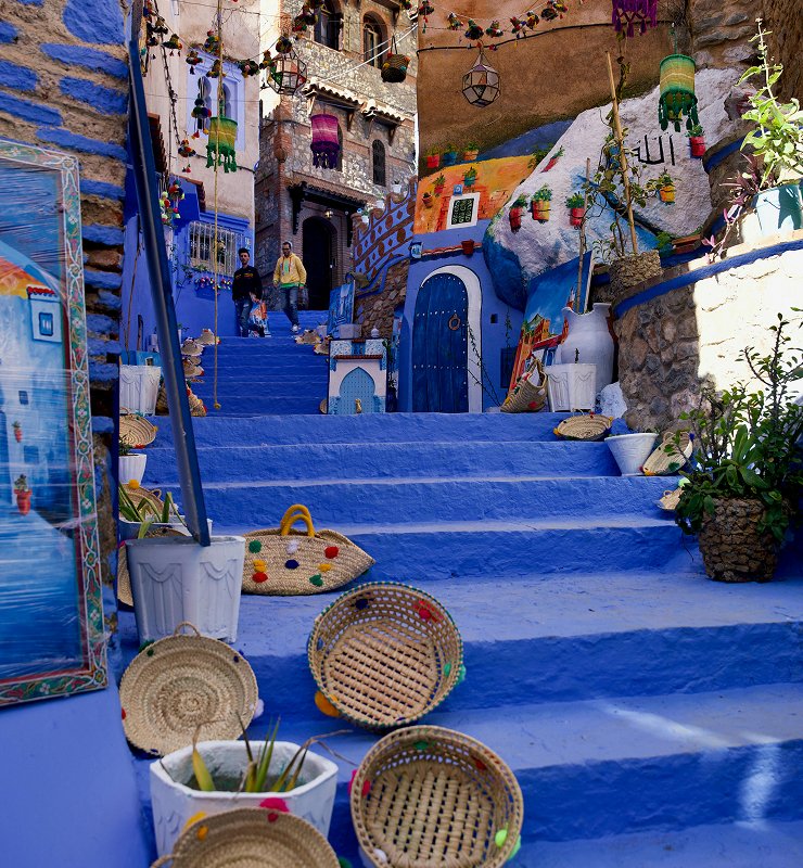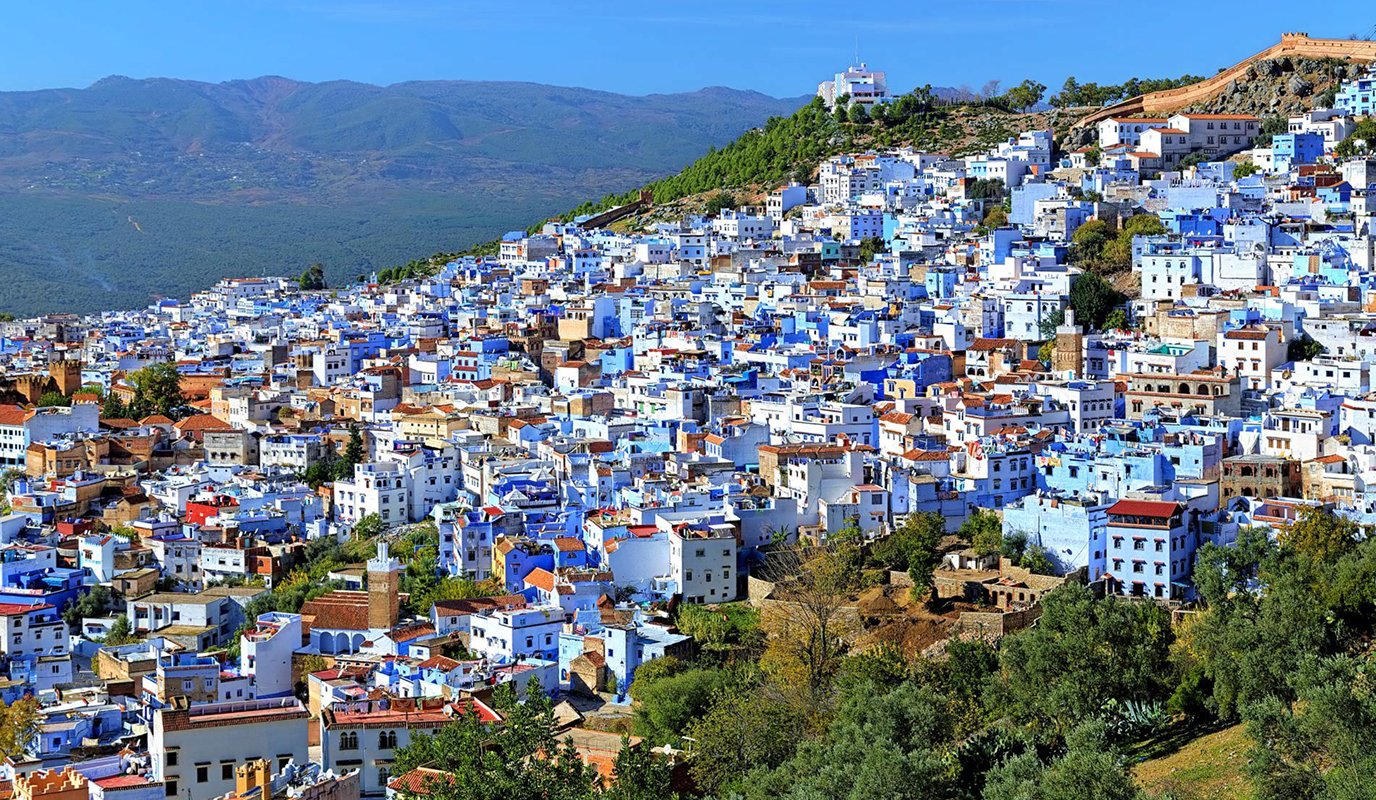 Depart Rabat for the Rif Mountains, stopping in Tetouan, historically home to a vibrant Sephardic Jewish population. Walk through the Tetouan Mellah, known for its Andalusian-style buildings, synagogues, and traditional artisan shops. Continue to Chefchaouen, the famous blue-washed mountain town. Explore Outa-el-Hammam Square, stroll through the medina’s narrow lanes, and admire the Grand Mosque, with the Rif Mountains as a backdrop. Overnight in Chefchaouen.