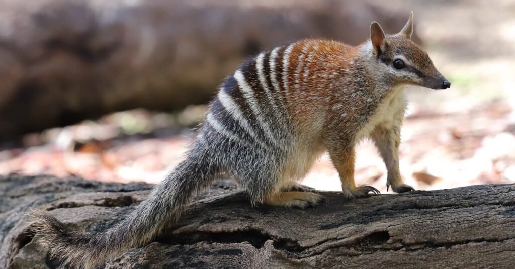 The numbat is one of Australia’s most beautiful and most endangered marsupials — a small, fox-sized animal with a striking rust and white striped coat and a long pointed snout specifically adapted for termite feeding.